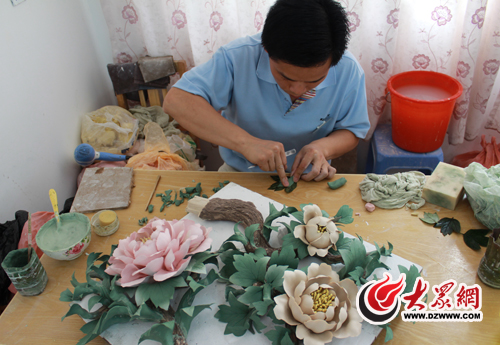 還未進行最后燒制的牡丹瓷看起來已經十分的生動逼真