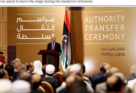 利比亞全國過渡委員向議會移交權(quán)力儀式(網(wǎng)頁截圖)