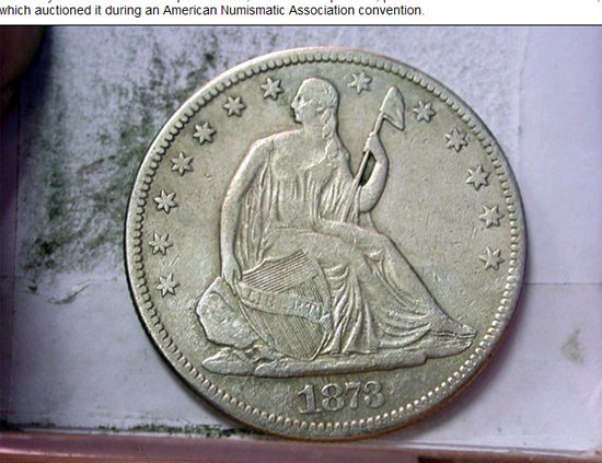 這枚鑄造于1873年的10美分硬幣拍出160萬美元的高價(網頁截圖)