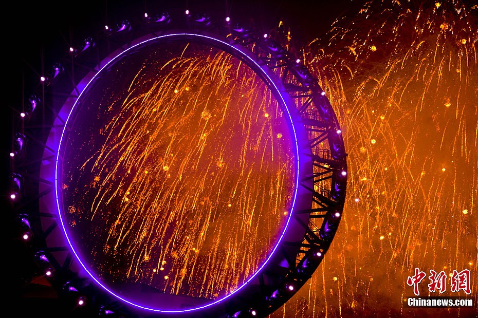 8月12日晚,韓國麗水世博會在海濱天眼輪大秀焰火,歡慶本屆海洋主題的國際盛會閉幕。賈國榮 攝