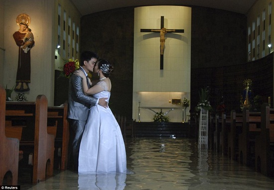 菲律賓新人不顧洪水沒膝 暴雨中舉行婚禮(組圖)