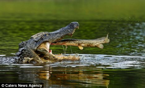 大魚蹦到嘴巴里 幸運鱷魚免費吃“快餐”(組圖)