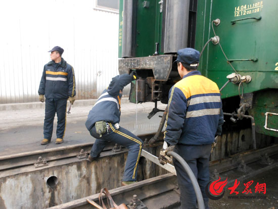 “火車能晚點,我們絕對不能,人等車可以,車等人可不行!”檢修乙班的班長王偉告訴記者,不管火車幾點到,他們都是每天早晨8點準時到單位與上一個班次的同事交接,然后對每天的14列圖定列車、1列臨時客車進行檢修。“人的時間跟著車定,如果最后一班列車晚點一個小時,我們就得延長一個小時。”王偉介紹說,一般情況下,檢修工要從每天早上8點工作到凌晨兩三點,然后到第二天8點交接工作,下班回家。在這16人中有5位外地人,一位來自淄博,兩位來自曲阜,兩位來自兗州,對他們5個來說,每天早晨8點下班后就要坐火車回家,上班的時候再坐火車來濟南,周而復始,“很多時候回家的車上沒有做,就得站一路!
