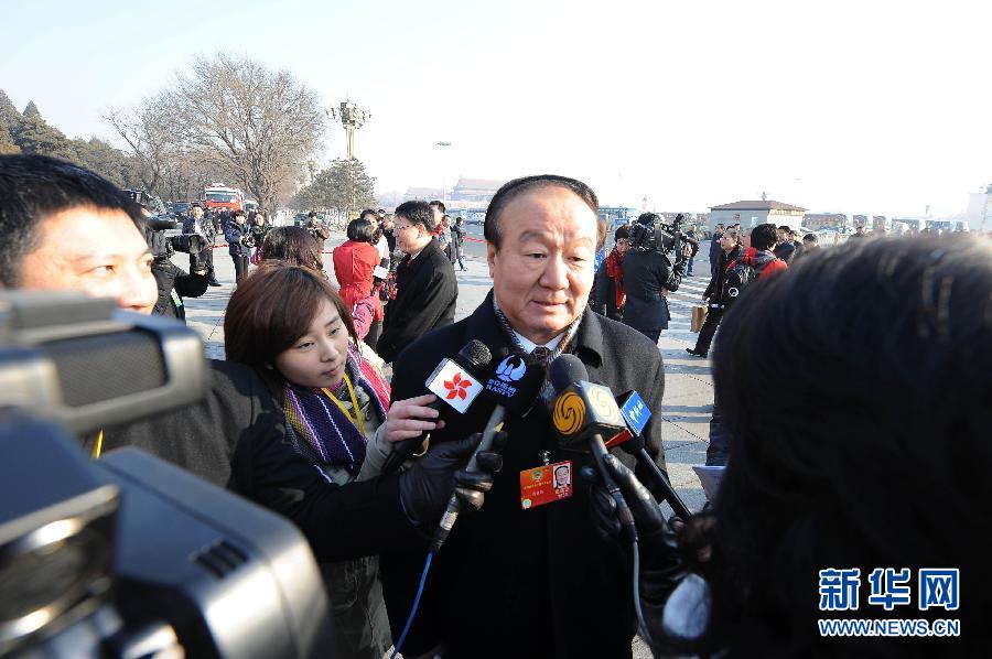 3月13日,中國人民政治協(xié)商會議第十一屆全國委員會第五次會議在北京人民大會堂閉幕。這是全國政協(xié)委員蔣效愚接受記者采訪。 新華社記者楊宗友 攝