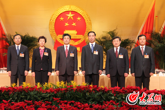圖為濱州市十屆人大常委會(huì)主任、副主任、秘書(shū)長(zhǎng)。 記者 王曉霜 攝