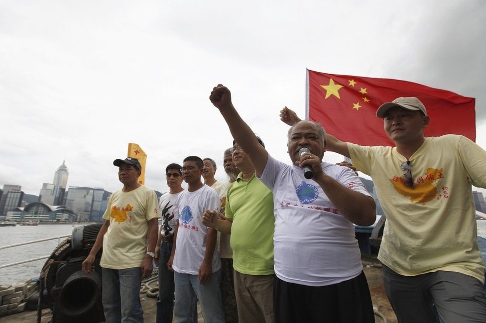 保釣人士出海前高呼口號。7月4日,臺灣保釣人士黃錫麟等人搭乘“全家福號”漁船進入釣魚島海域,臺灣派出5艘巡防艦艇全程維護“全家福號”安全。期間,保釣方船只與日方艦艇出現短暫對峙。但最終成功在距釣魚島10公尺處亮出五星紅旗宣示主權,并在臺“海巡署”艦艇護航下順利返臺。
