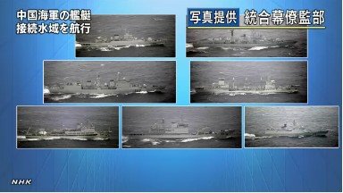中國海軍7艘艦艇在“毗鄰水域”航行 圖片來自日本NHK網站截圖