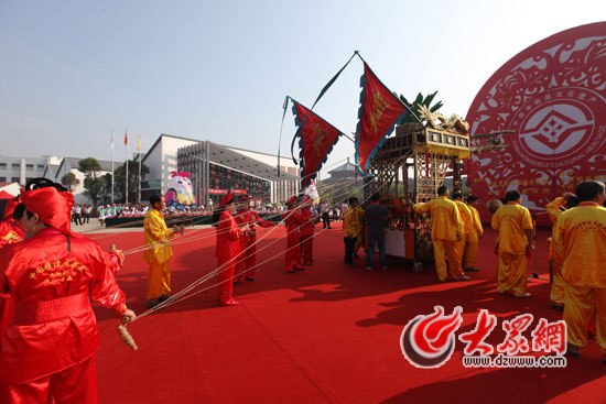 大眾網棗莊9月6日訊(記者 尹海洋 馬鑫)在朝鮮族長鼓舞之后登場的,是被譽為“東方一絕”的浙江永康《九獅圖》表演。