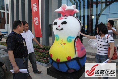 工程人員在緊張施工館內到處都有中國元素吉祥物在場館入口處讓人喜愛蒙古包已見雛形 非遺博覽會會展中心位于臺兒莊古城西門入口處,分為A、B兩大區域。來自陜西西安的一位師傅說,他們來了兩三天了,目前正在按照圖紙的設計,爭分奪秒的制作展區特裝展位。