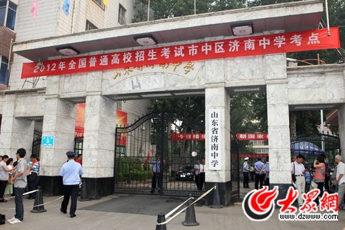 [提要] 今天,為期兩天半的2012年山東省夏季高考終于拉開帷幕。山東省共有497684名考生報名參加考試,其中濟南市將有31884名考生分別在26個考點內(nèi)參加考試。今天上午,大眾網(wǎng)記者走進考點之一——濟南中學,零距離探訪高考考點內(nèi)發(fā)生的各種情況。