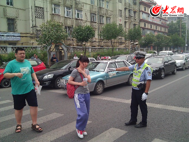 在濟南中學考點前,交警設置了專門的指示牌。不論是否紅燈,過馬路的考生都被優(yōu)先放行。