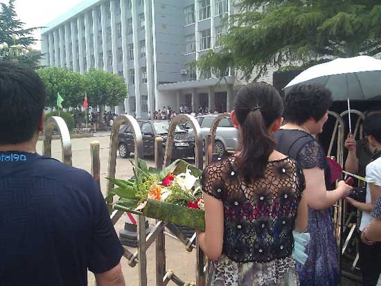 - 6月9日10:50山師附中考點 記者王磊:鮮花送英雄