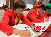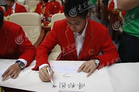 奧運健兒在留言簿上簽名留言