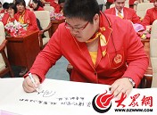 李曉霞在留言冊上寫下自己的奧運感言
