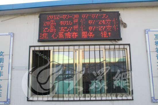 調度室外的電子顯示屏,高峰期每隔兩三分鐘就會發一趟車。