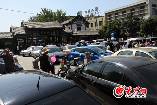 濟南市趵突泉公園北門被游客的車輛堵得水泄不通。