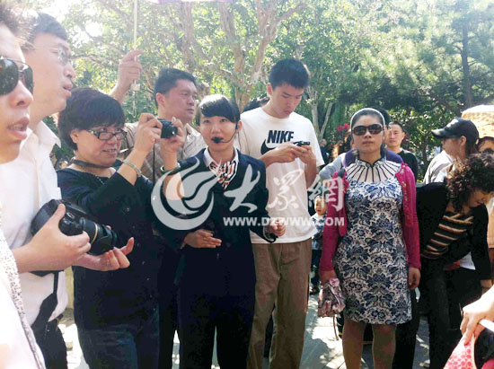 國慶節,趵突泉迎來了又一個游客高峰,然而,這對于常年在園里工作的導游來說,卻再平常不過。10月1日一早,大眾網記者來到趵突泉公園,與美女導游毛莉一起帶團。面對一個多小時的“體力活”,毛莉說,在旁人看來導游的工作都是千篇一律,但是介紹景點可不是背詞那么簡單,面對不同的游客要有不同的技巧,一個景點折射就能折射一座城市。