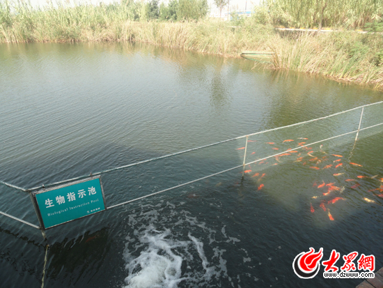 大眾網記者在廠區內的生態池看到,處理過的水清可見底,綠色的蘆葦隨風飄蕩,一群金魚正在池底來回游曳,水體沒有刺鼻的氣味,也沒有渾濁的顏色。“排出去的水COD都在40mg/L以下,遠低于國家90mg/L的標準,用來養魚澆花、灌溉農田一點問題都沒有。”