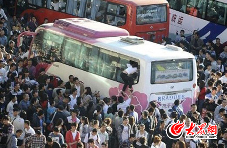 下午3點半,當小吳來到濟南長途汽車總站時,眼前的景象把她嚇了一跳,平時號稱“中華第一站”的濟南長途汽車總站此時是人山人海,無論是在售票處還是發(fā)車處都排起了長長的隊伍。排了近一個小時后,小吳只往前挪動了兩三米的距離,眼看著中秋回家團圓的愿望落空了,小吳當機立斷不走了!