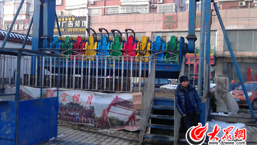“有錢(qián)沒(méi)錢(qián),回家過(guò)年”,這句歌詞唱的不是吳橋人王明的生活。臘月十九,當(dāng)在外打工的人們千方百計(jì)往家趕的時(shí)候,高唐縣魚(yú)邱湖畔的廣場(chǎng)卻迎來(lái)幾輛來(lái)自吳橋的大卡車(chē),車(chē)上卸下的“鐵家伙”搭建起來(lái)后,是十多座游樂(lè)設(shè)備,其中“空中飛椅”和“碰碰車(chē)”是王明家的,也是她和老公在外拼搏的全部家當(dāng)。
