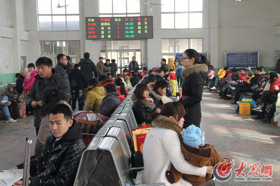 2月12日是大年初三,離農民工、上班族返崗還有一段時間,但記者在巨野站的候車廳發現乘客卻很多,一般是兩三個人中帶著個兒童,像是一家人乘車出行。“10幾年前,往往是大的節假日固定幾天忙碌,但現在人口流動性逐漸增強,不分什么初一、十五的,每天出行的人都很多,像今天初三外出的,大都是走親訪友。”李靜說。