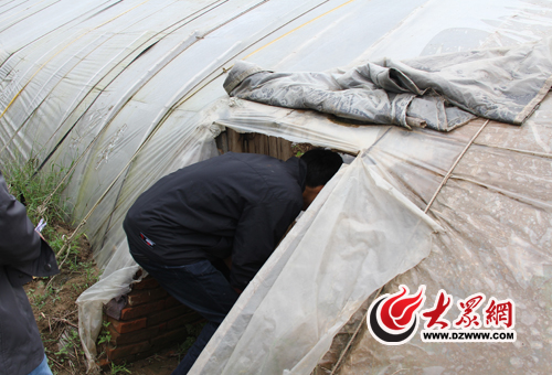 記者彎腰鉆進大棚中