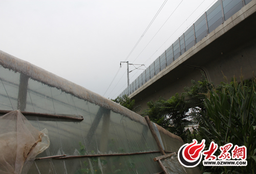 有些大棚建造在高鐵橋下,列車已經過引發的巨大聲響使大棚內頂部積聚的水珠紛紛落下,一時間棚內下起了“小雨”
