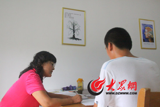 劉敏正與小豪交流,大眾網記者以“助理咨詢師”的身份在一旁進行體驗
