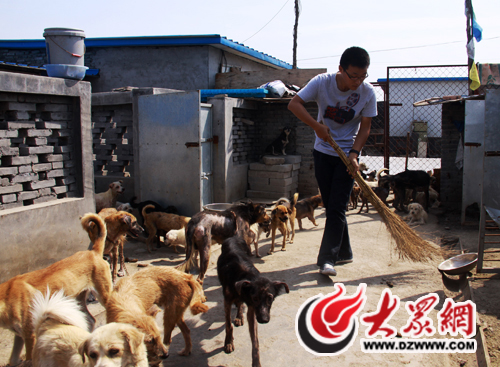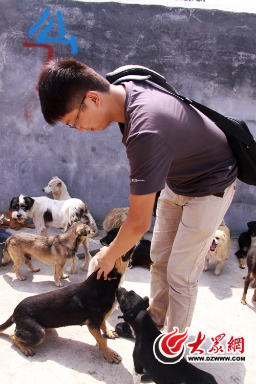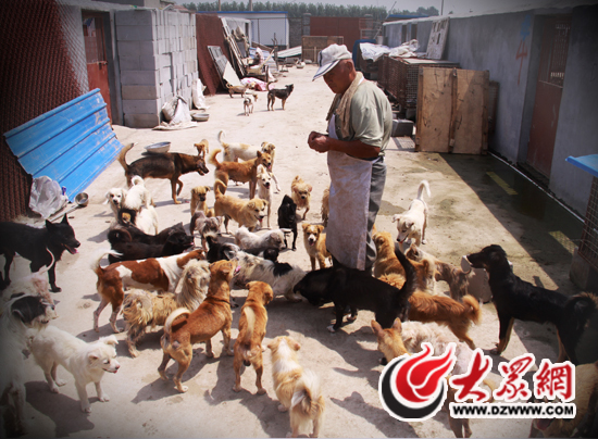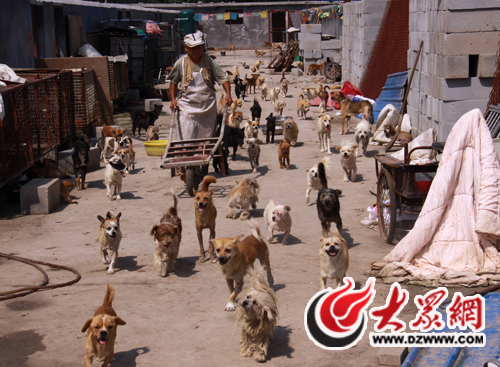 院子的門口,三四個工人正將一塊刻著“泰山小動物保護中心”字樣的石碑豎在門前。推開大門,三四只小狗搖著尾巴圍了過來,在記者腳邊嗅來嗅去。而放眼望去,小院的四周全是磨著水泥的狗舍,陌生人的進入,引得全院子數千只狗齊吠!安挥门,這些狗光叫不咬人。”正準備喂狗的趙大叔在四、五十只只狗的簇擁下,把記者帶進院子。
