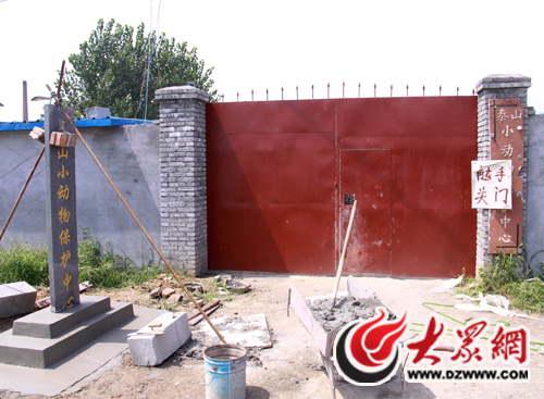 在志愿者的捐助下,泰山小動物保護中心的門口總算立起了個像樣的名牌。