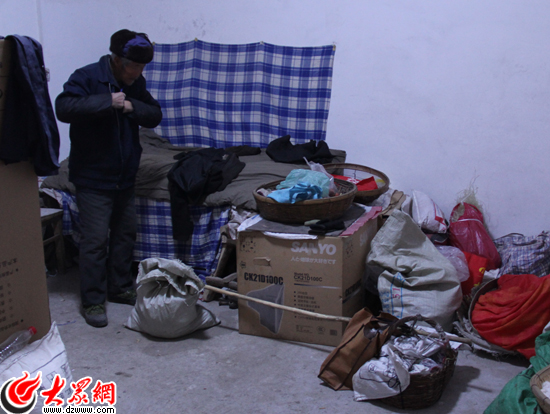 當天室外溫度零下6度,沒有取暖設備的楊洪義家,門里門外溫度幾乎一樣。(韋輝 攝)