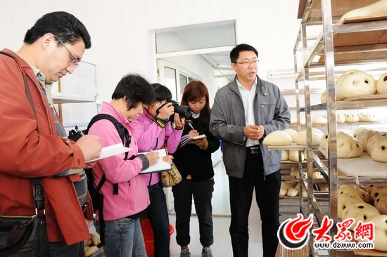 大眾網記者 李冉 邢玉軍/攝影 大眾網記者 燕雨在青島嶗山區尋找王哥莊一點都不難,過了仰口隧道,順著沿途密集的“王哥莊大饅頭”的招牌,記者一下就摸到了地方。王哥莊之所以出名,也正是因為有了“大饅頭”這個叫得響的品牌。10月25日,大眾網年輕記者前來采訪,王哥莊街道辦事處特色產品推介管理辦公室主任萬延濱全程介紹情況,這位“王哥莊大饅頭”重要的品牌打造者對饅頭產業的發展過程歷歷在目,當他熟得不能再熟地向記者講起大饅頭的“發家史”,一部“饅頭經”躍然眼前,正是政府不遺余力地扶持、保姆式的服務,使小饅頭成就了大產業,不但富裕了農戶,還創造了一個地方品牌。