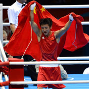 2012年8月11日,拳擊——鄒市明奪得男子49公斤級冠軍。圖為,鄒市明慶祝勝利。當日,在倫敦奧運會男子拳擊49公斤級決賽中,鄒...