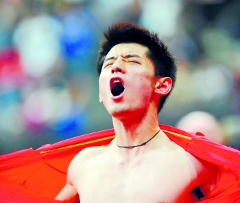 張繼科手舉國旗慶祝。