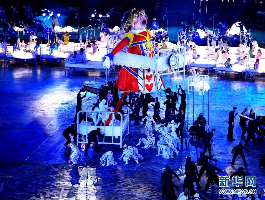 7月27日,第三十屆夏季奧林匹克運動會開幕式在倫敦奧林匹克公園主體育場“倫敦碗”舉行。這是開幕式上的文藝表演。 新華社記者陳建力攝