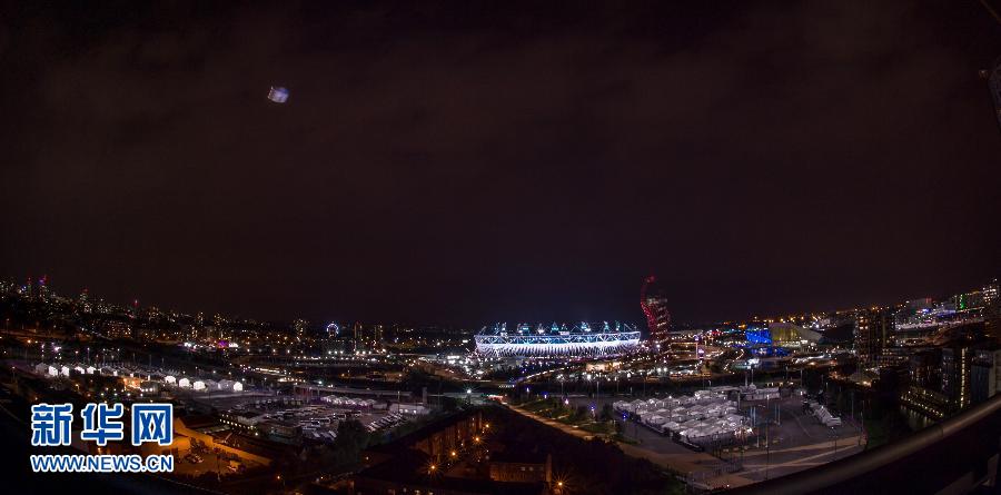 7月27日,第三十屆夏季奧林匹克運動會在英國倫敦開幕。這是俯視夜幕下的奧林匹克公園。 新華社記者 程敏 攝