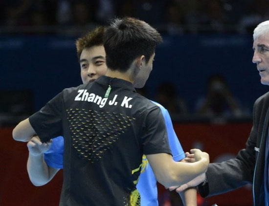 北京時間8月2日,倫敦奧運會乒乓球男單決賽剛剛結束,比賽在兩位中國選手之間進行,最終張繼科發揮更勝一籌,他以4-1擊敗王皓,首次參加奧運會就取得了男單金牌。張繼科去年曾經連續獲得世乒賽和世界杯的男單冠軍,這樣他就成了中國男乒歷史上繼劉國梁和孔令輝之后第三位大滿貫選手!這也是中國代表團在本屆奧運會上獲得的第18枚金牌。(專題推薦:魯能球員閃耀倫敦)