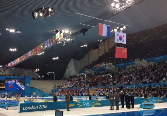 倫敦當地時間8月3日晚,倫敦奧運會男子100米蝶泳結束決賽的較量,菲爾普斯強勢奪金,而南非選手勒-克洛斯和俄羅斯選手科羅特什金并列獲得銀牌。奧林匹克水上中心的頒獎儀式上,同為亞軍的俄羅斯與南非國旗一下一上排列徐徐升起,重現了孫楊與樸泰桓在200米自由泳并列亞軍后,中韓國旗一下一上的那一幕。