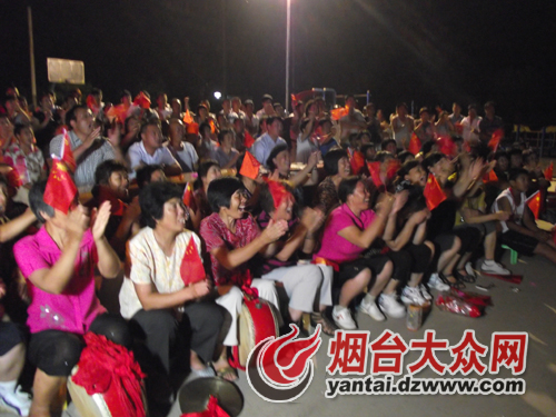 22點30分,比賽正式開始,小廣場上的人也漸漸地多了起來。輪到周璐璐出場時,全場一片沸騰,大家舉起手中的小國旗喊,“小璐璐出來了!”