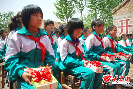 德州禹城市莒鎮鄉中心小學的學生手捧愛心圖書。(大眾網記者 王長坤 攝)