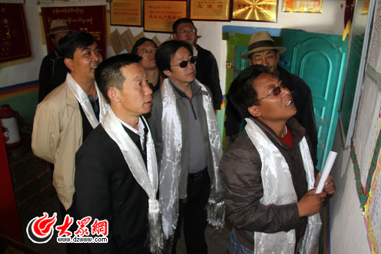 考察組一行在援藏干部陪同下視察吉定村基層黨建活動。