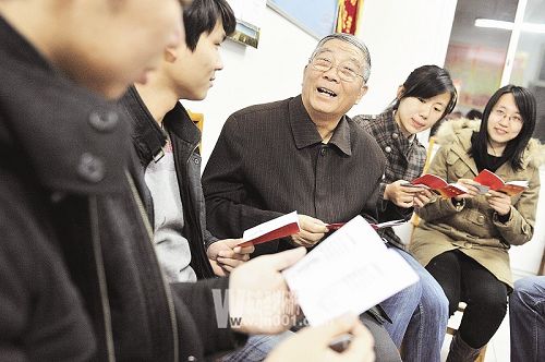 細心的人會發現,謝立亭的名片有種特別的“味道”,這味道是淡淡的中藥味。謝立亭常年奔波在宣講一線,一個帆布包是他的全部家當。里面不僅有各種名片、讀書筆記、收集來的資料,同時也放著麝香虎骨膏、降壓藥等藥品。一次他去一所希望小學作報告,由于路程太遠,很疲勞,回家心臟不舒服,服藥后很久才舒緩過來。2010年年初,老謝做了兩次心臟支架手術。出院不久,他就讓老伴用三輪車拉著他到社區和公共活動場所、機關單位宣傳。老伴勸他不要這么辛苦,他卻說:“只要生命不息,我就宣講不止。”