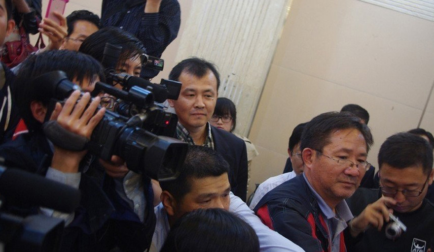10月11日晚,莫言在家鄉山東高密召開獲得諾貝爾文學獎之后的第一次記者見面會,眾多媒體記者參加。