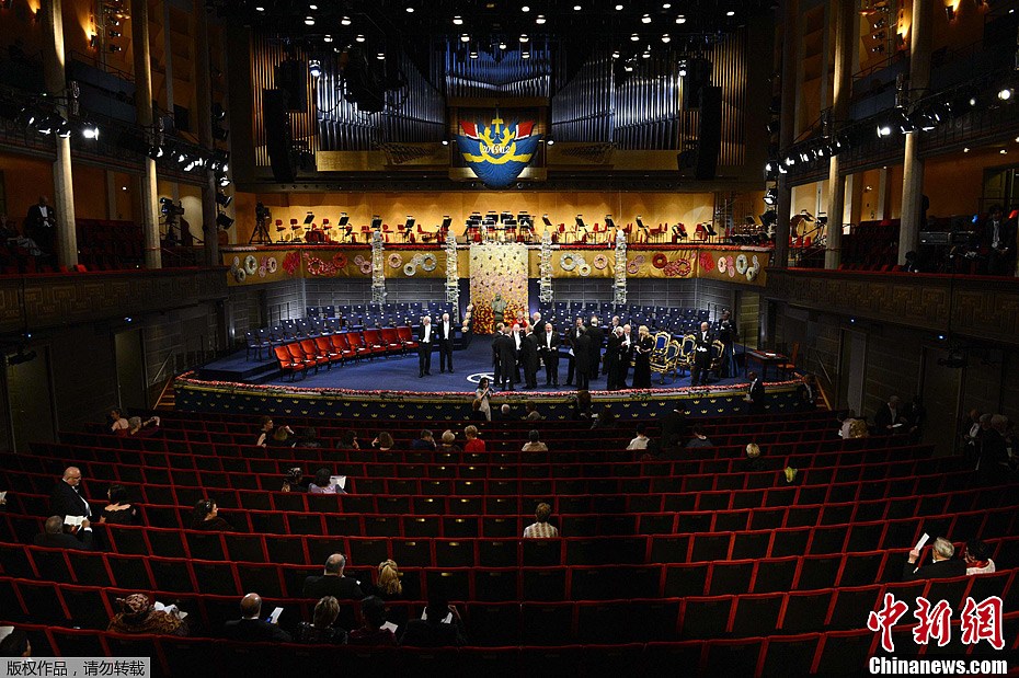 當?shù)貢r間12月10日,2012年諾貝爾頒獎儀式在瑞典斯德哥爾摩音樂廳舉行。圖為頒獎儀式開始之前。