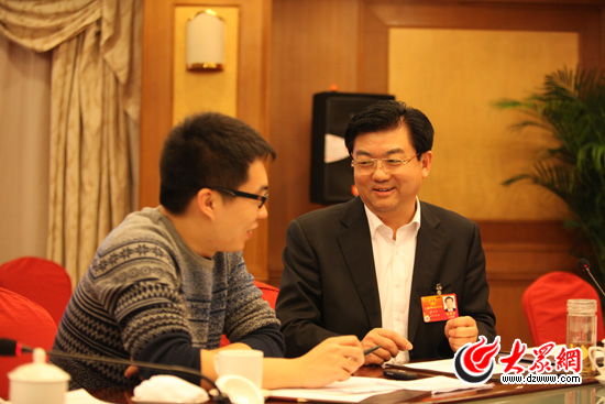 全國人大代表、濰坊市委書記許立全在接受大眾網記者專訪。