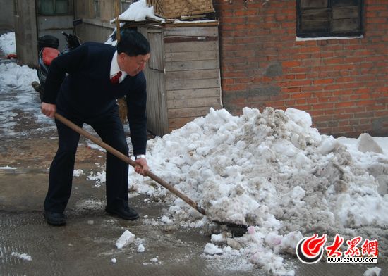 每年下大雪安立盛都說是第一個動手掃雪的,不僅自家門前雪而且社區(qū)達到上的學他們帶頭掃清被大家稱為閑不住的人
