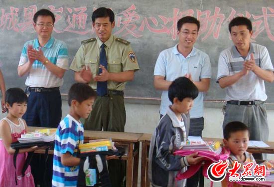 2010年5月19日,鄄城縣交通運(yùn)輸局維修科第一次結(jié)對(duì)助學(xué)捐贈(zèng)儀式在左營(yíng)鄉(xiāng)中心校舉行,來(lái)自全鄉(xiāng)多處小學(xué)的孫龍、劉泰等15名貧困學(xué)生分別收到了書(shū)包、鋼筆、文具盒和筆記本等學(xué)習(xí)用品。2011年1月18日上午,張培軍等9名同志又到舊城鎮(zhèn)走訪慰問(wèn)貧困學(xué)生,為周西棟等3名貧困學(xué)生家庭分別送去了兩袋面粉、兩桶食用油和兩箱方便面。他們的愛(ài)心助學(xué)行動(dòng),讓三個(gè)貧困家庭在嚴(yán)寒的冬日里,感受到了濃濃的暖意。他們這次救助的周西棟、申惠丹和王震三名貧困學(xué)生,都是單親家庭,生活十分拮據(jù),尤其是周西棟同學(xué),父親癱瘓?jiān)诖玻畈荒茏岳怼V芪鳁澯盟怯仔〉碾p肩撐起了整個(gè)家庭的重?fù)?dān),不僅要自己動(dòng)手做飯、洗衣,而且還要照顧重病父親的吃、喝、拉、撒、睡。但是周西棟同學(xué)卻沒(méi)有被沉重的生活負(fù)擔(dān)所壓倒,學(xué)習(xí)非常刻苦,成績(jī)十分優(yōu)異。當(dāng)看到張培軍等9名同志送來(lái)的面粉、食用油和方便面等生活必需品時(shí),周西棟父親這位飽受生活磨難的中年漢子也禁不住潸然淚下,泣不成聲。看到三位孩子的不幸遭遇,張培軍等人一直表示,他們將把這種愛(ài)心活動(dòng)長(zhǎng)期開(kāi)展下去,決心盡自己的綿薄之力,讓更多的孩子享受到社會(huì)大家庭的溫暖,順利完成學(xué)業(yè),將來(lái)成為國(guó)家和社會(huì)的棟梁之才。