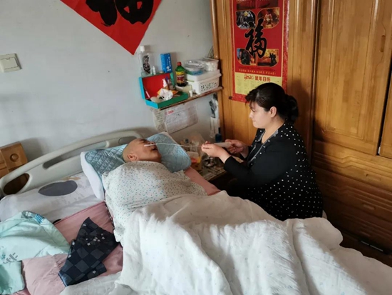 喂水喂飯、貼心呵護,徐霞以拳拳孝心,陪伴著躺在病榻上的父親……十多年來,徐霞放棄了工作,每天風雨無阻的往返10里地的距離,從自己家中趕到父親家中照顧著他,她用行動回報著父母的恩情,為父親撐起一片天。