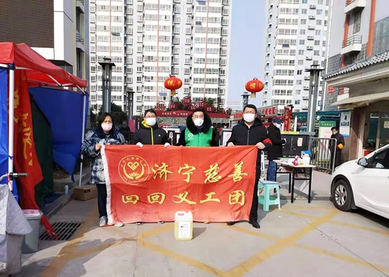 2020年新冠肺炎疫情防控期間,白景忠接到防控任務后,從大年初一開始就到濟寧火車站展開24小時輪值,堅決防止疫情輸入。后來又加入疫情流調組,到酒店檢測疫情。他帶領義工團員們在社團內部開展了“我為武漢加油,武漢有我必勝”捐款活動,僅一天時間,濟寧回回義工團共募得善款4千余元。2月8日,義工團代表前往區(qū)疾控中心,為濟寧市防控一線人員送上方便面和消殺物品次氯酸鈉等愛心物資;給柳行社區(qū)、王母閣社區(qū)、順和東大寺、柳行東寺和清真女寺捐贈消毒液等。2月11日,“回回義工團”將剩余的3480元善款捐贈給了濟寧市慈善總會發(fā)起的“眾志成城抗擊疫情”項目!盎鼗卮壬屏x工團”在白景忠團長的帶領下,就像一朵象征民族精神的花朵在綻放。