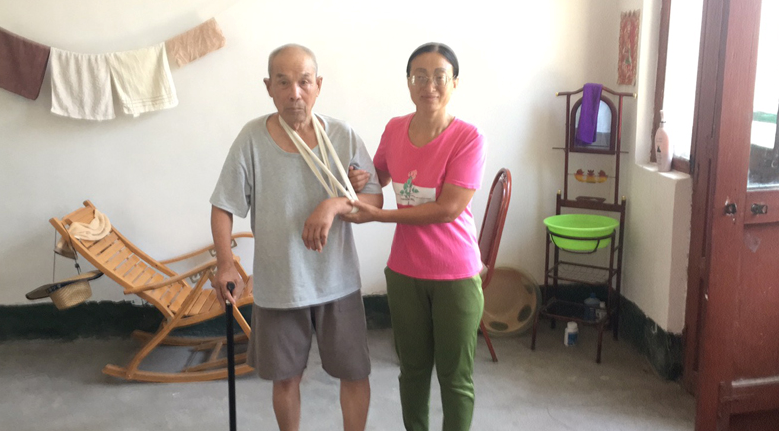 胡艷玲視力二級(jí)殘疾,整日生活在模模糊糊,朦朦朧朧的世界里,這本身就是一個(gè)需要受到精心照料的人。可是,胡艷玲的公公駝背,體弱多病,喪失勞動(dòng)能力,婆婆癱瘓?jiān)诖玻荒苌钭岳恚骞虺鲕嚨湥腋觳惨褮埣玻敝負(fù)?dān)壓在胡艷玲身上,胡艷玲并沒有因?yàn)橐暳埣捕艞墝θ焕先说恼疹櫋K靶ⅰ弊之?dāng)先、“愛”字裝心,不嫌臟不嫌累,任勞任怨,無微不至地照顧三位老人,她把他們當(dāng)作自己父母一樣的親人看待,平時(shí)除了忙地里的活,她很少外出,堅(jiān)持每天給他們喂飯、洗臉、翻身、擦洗……胡艷玲老公弟兄三個(gè)里年齡最小,兩個(gè)哥哥早年去了東北生活,他們多次要求把父母接到東北盡盡孝心,可是胡艷玲沒有同意,她說父母年事已高,經(jīng)不起折騰,更何況不一定適應(yīng)東北的生活,再說婆婆癱瘓?jiān)诖玻瑏砘匕徇w,很不方便,雖然照顧三位老人的重?fù)?dān)壓在她一個(gè)殘疾人身上,但她無怨無悔任勞任怨,她說,老人在世一天,就要讓老人盡享晚年。